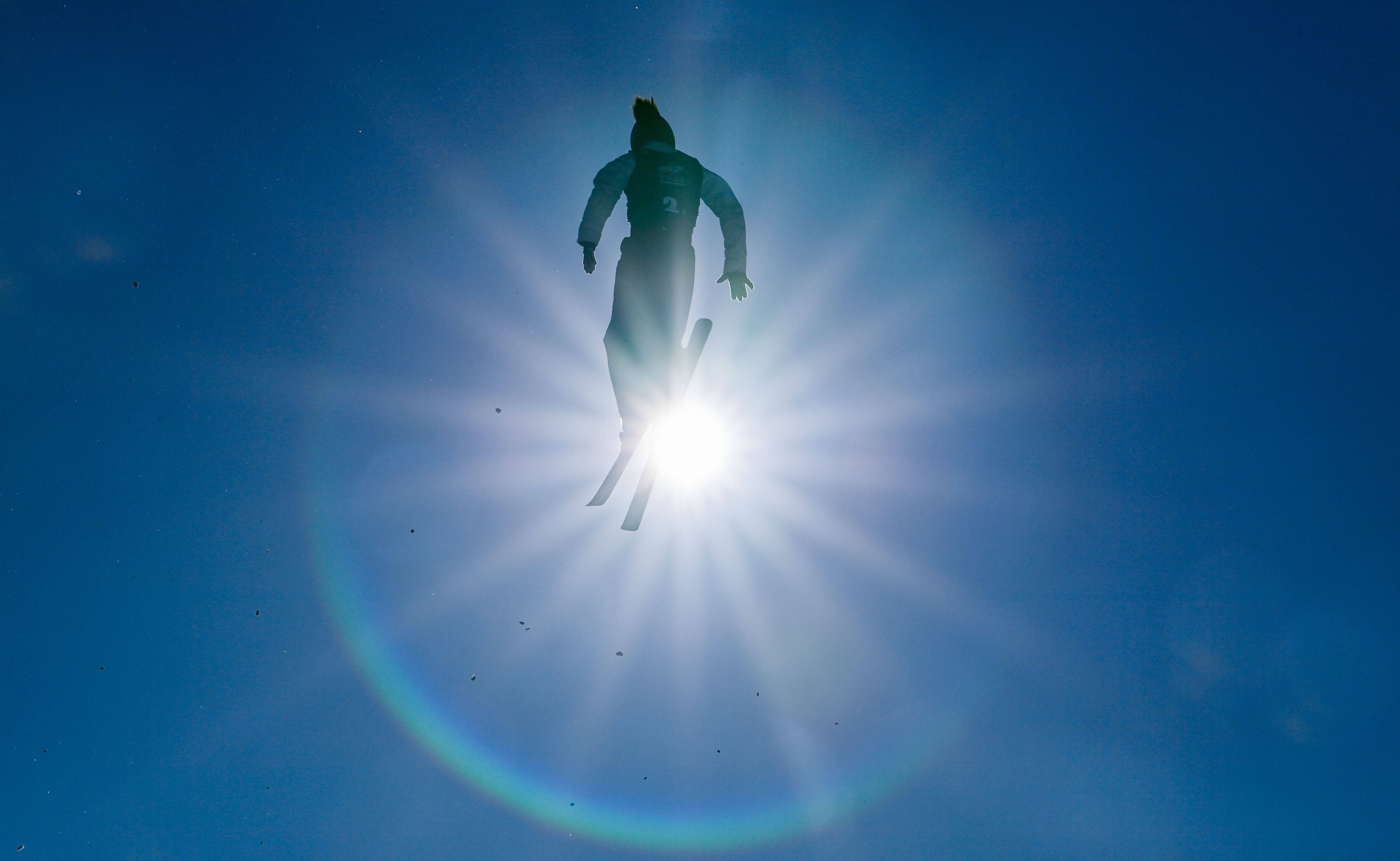 2025年2月24日,中国一队徐梦桃在比赛中。当日,在2024-2025赛季国际雪联自由式滑雪世界杯(北大湖站)空中技巧混合团体决赛中,由徐梦桃、李天马、齐广璞组成的中国一队获得金牌。