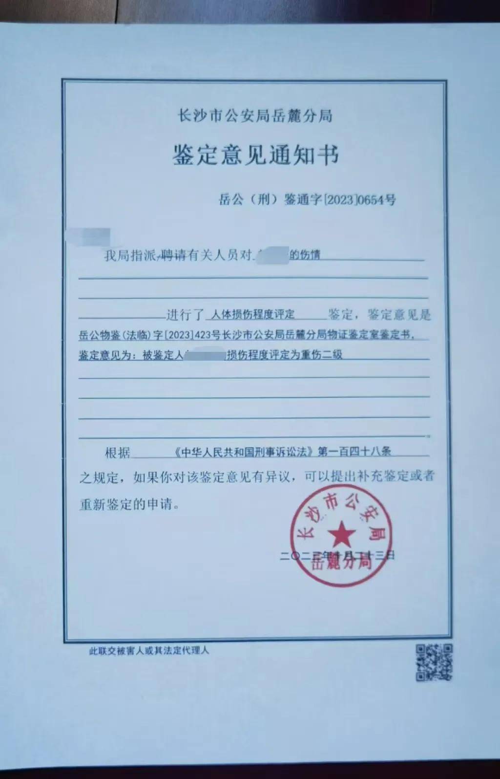 2023年,湖南长沙市岳麓区九岁女孩晨晨(化名)在上学期间,被老师宋雨明用三角尺砸碎头骨, 后经过5个小时的开颅手术,才将被打碎的头骨和异物取出,经法医鉴定为重伤二级、九级伤残。
